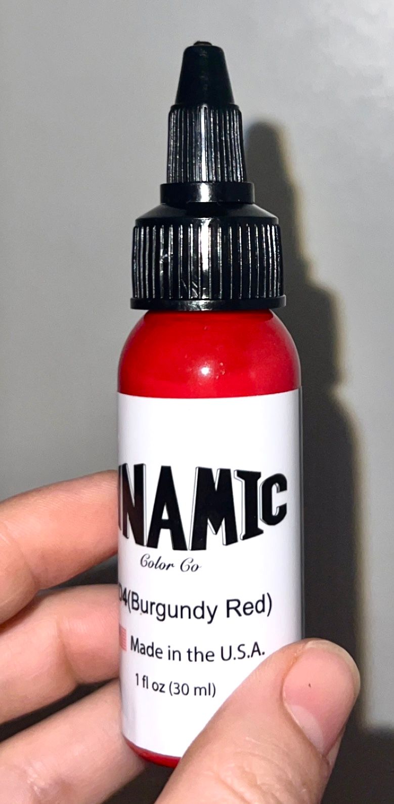 Dynamic Color Burgundy Red Tattoo Ink brings deep red hues to create a rich, one-of-a-kind shade. Taking its name from the sophisticated wines of the French Bordeaux region, Burgundy Red creates the same warm, tingly feeling you can expect from a tall glass of vino. Ideal to add depth and dimension to pieces, this sultry shade is packed with pigment for the optimal absorption into the skin.